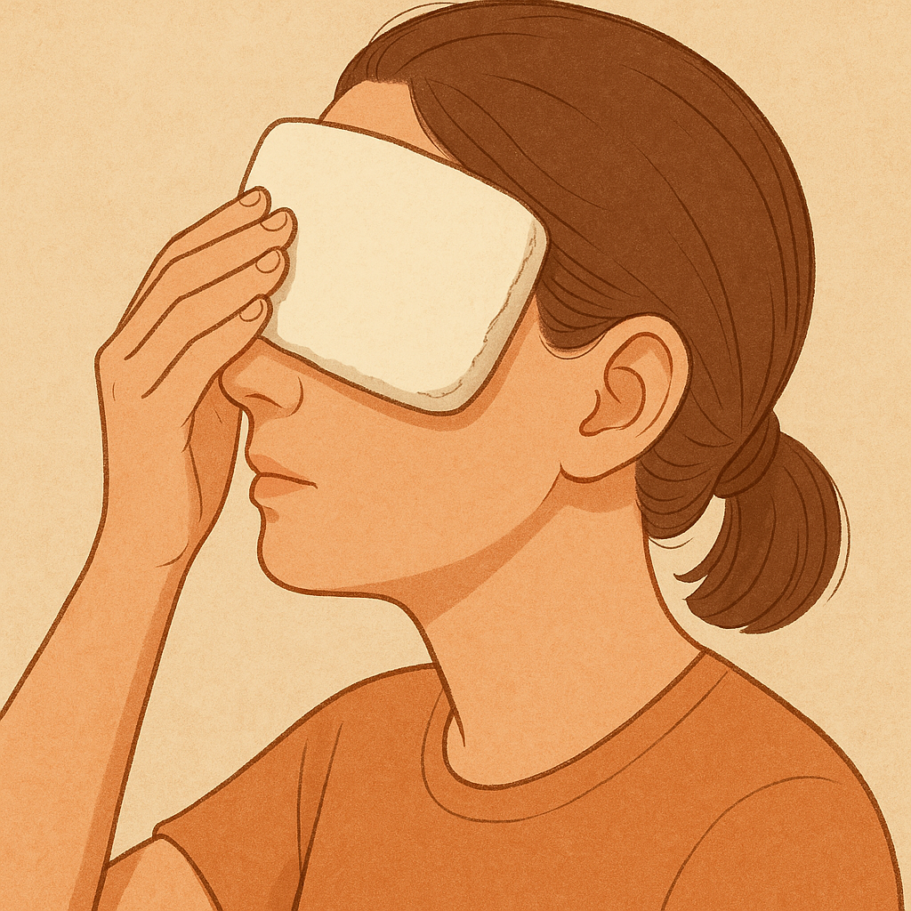따뜻한 물(40~45도)에 수건을 적신 뒤 가볍게 짜서 눈 위에 5~10분간 올려둡니다. 하루 4~6회 정도 반복하는 것이 좋습니다. - 효과