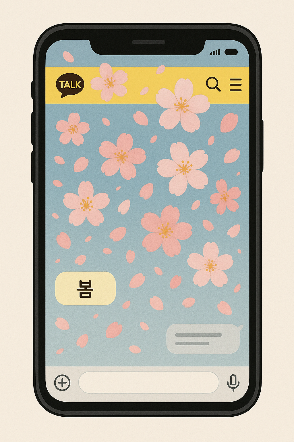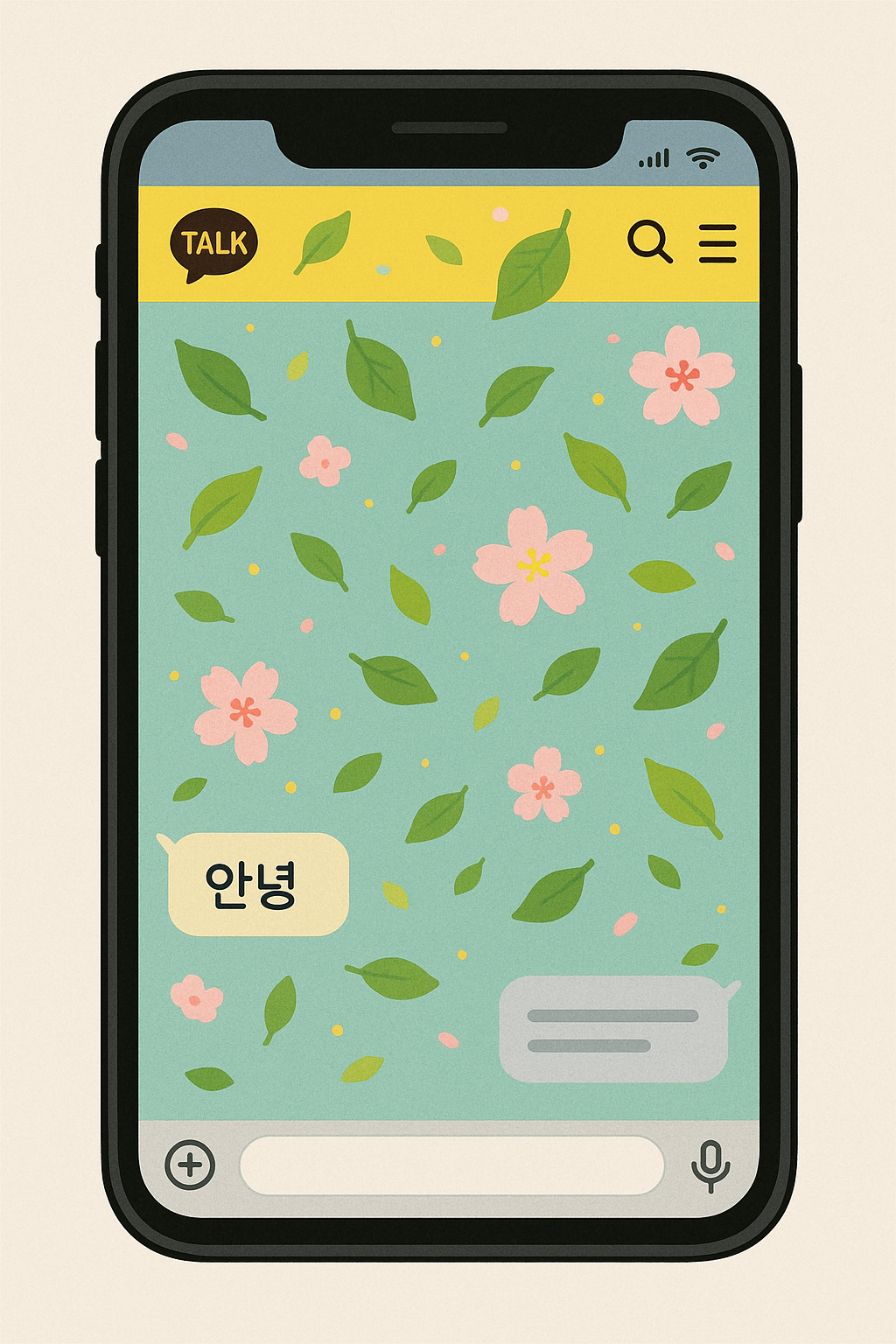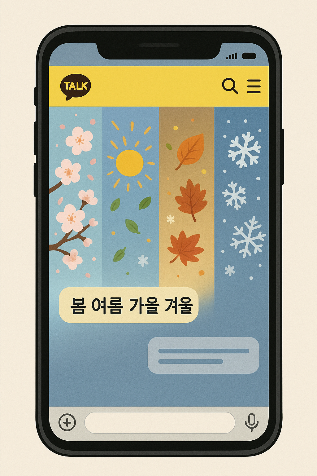 - 봄: 전반적으로 화사하고 부드러운 색채의 그래픽이 채팅창을 감싸며 계절감을 더합니다.
