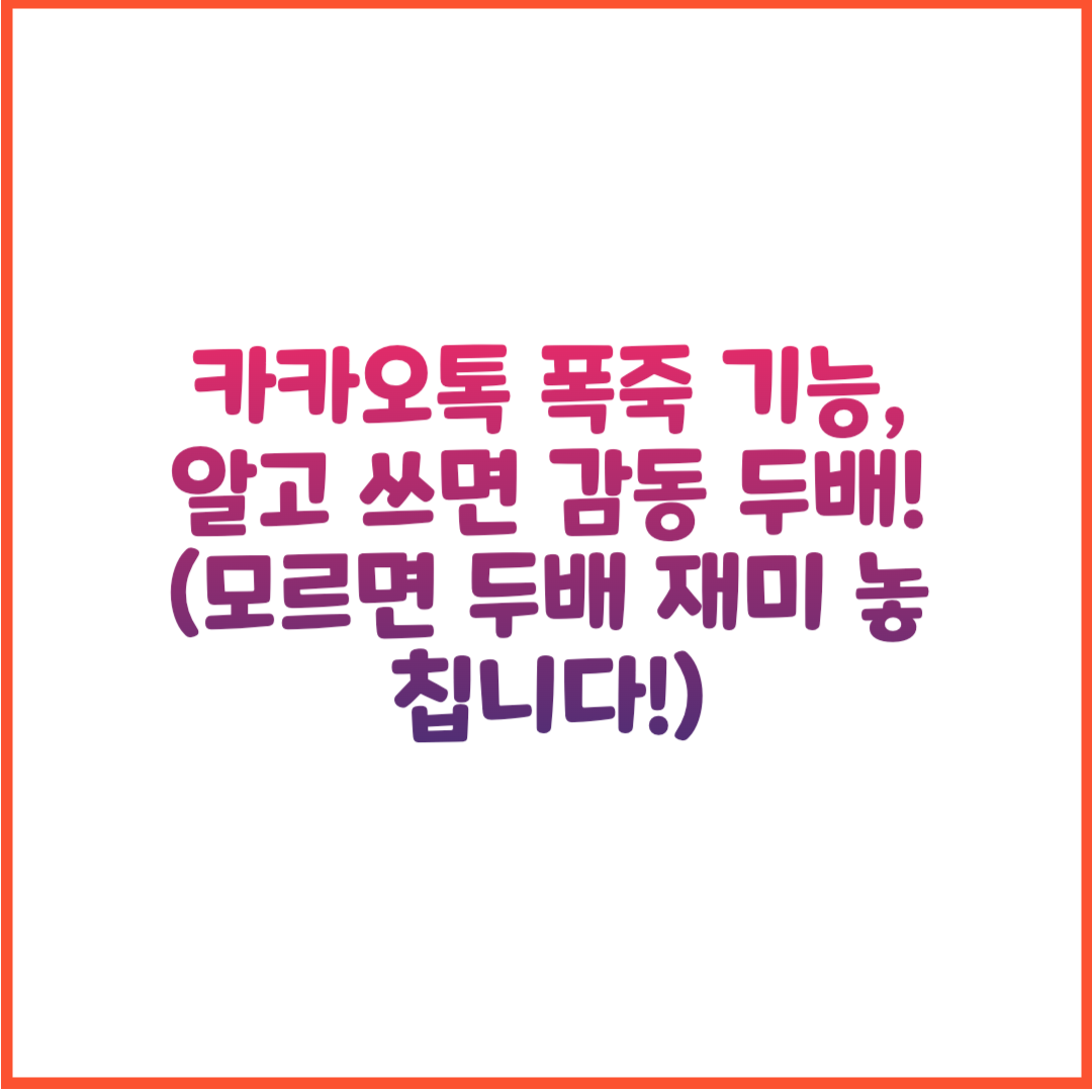 - 버전 확인: 일부 이스터에그는 최신 버전의 카카오톡에서만 지원될 수 있으므로, 앱을 최신 버전으로 유지하는 것이 좋습니다.