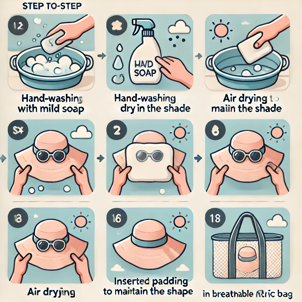 - 자외선 차단 모자는 **“세탁보다 관리가 더 중요”**합니다.